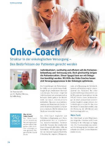 tion bewältigt werden. Mit Hilfe des Onko-Coaches lassen