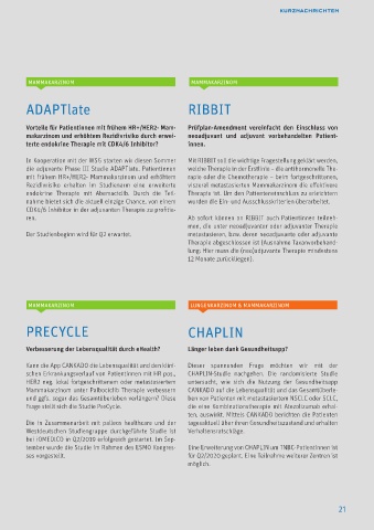 schen Erkrankungsverlauf von Patientinnen mit HR pos., CHAPLIN-Studie nachgehen. Die randomisierte Studie